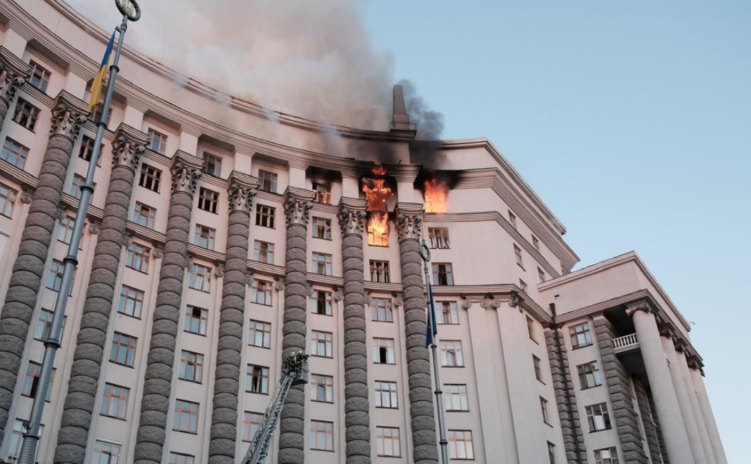 Το κεντρικό κτίριο της ουκρανικής κυβέρνησης στο Κίεβο έγινε στόχος ρωσικού βομβαρδισμού, με αποτέλεσμα να προκληθεί φωτιά.