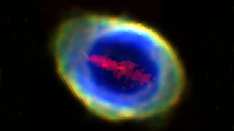 Σύμφωνα με το BBC, εντυπωσιακή αυτή δομή ανακαλύφθηκε στο εσωτερικό του Δακτυλιοειδούς Νεφελώματος, ενός γνωστού και ιδιαίτερα πολύχρωμου νεφελώματος που σχηματίστηκε όταν ένα άστρο παρόμοιο με τον Ήλιο, στο τελικό στάδιο της ζωής του, αποβολήσε τα εξωτερικά του στρώματα. Το νέφος έχει πλάτος περίπου 500 φορές μεγαλύτερο από την τροχιά του Πλούτωνα και βρίσκεται σε απόσταση 2.283 ετών φωτός από τη Γη.